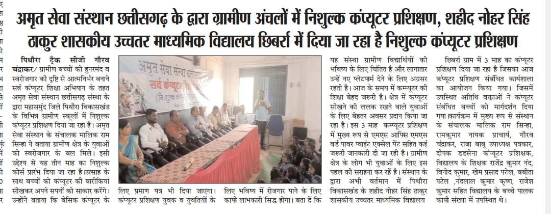अमृत सेवा संस्था छ.ग. के द्वारा निः शुल्क कम्प्यूटर प्रशिक्षण 26-02-24